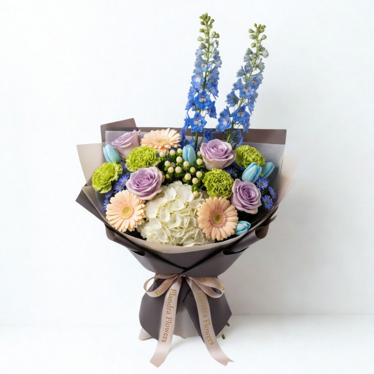 Pastel Harmony bouquet cast a gentle charm this arrange flower with its romantic mix of flower, A graceful arrangement that blends warmth and mystery – perfect for those who adore elegance with seasonal  twist.