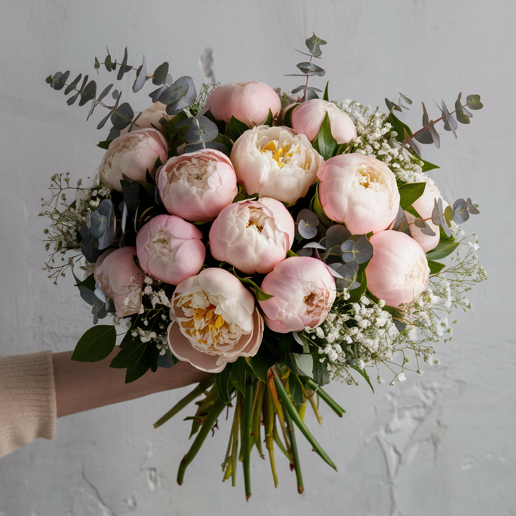 20 pcs of Peoni with Eucaliptus & Gypsu